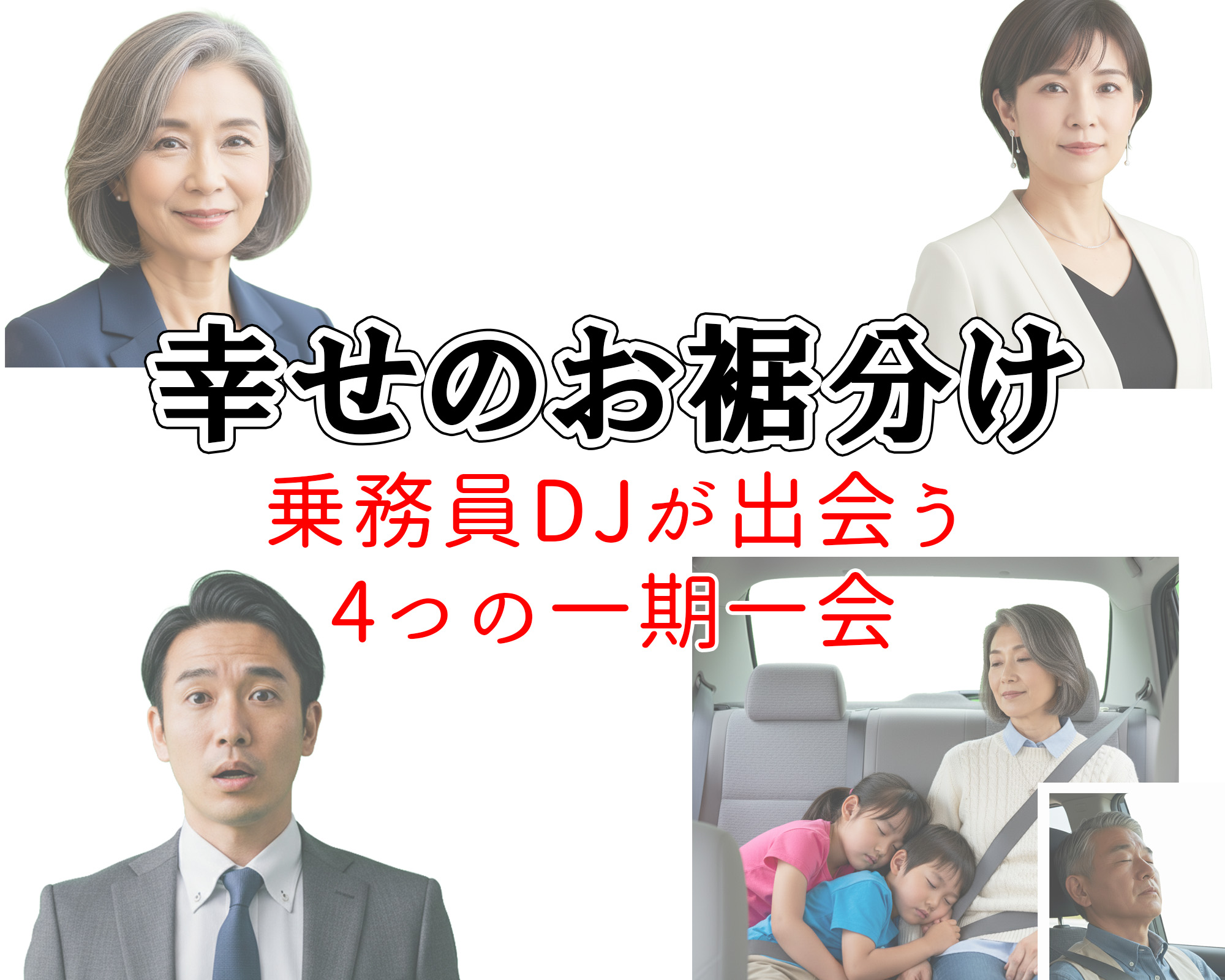 大丸タクシーの乗務員DJが出会う4つの一期一会のストーリー。幸せのお裾分けを頂くことで、DJの周囲で幸せが連鎖する。